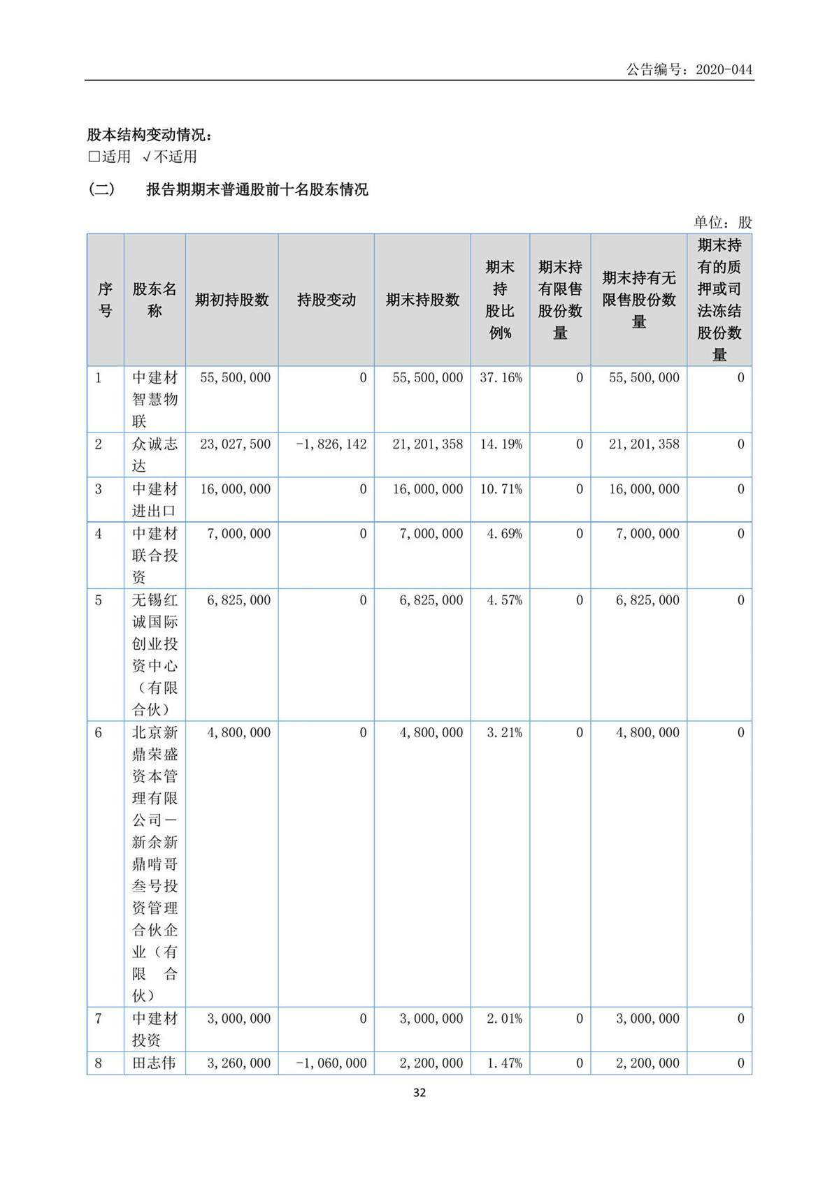 中建信息2020年半年度報告