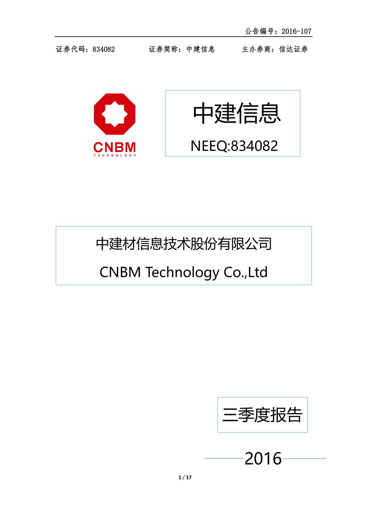 中建信息2016年三季度報(bào)告