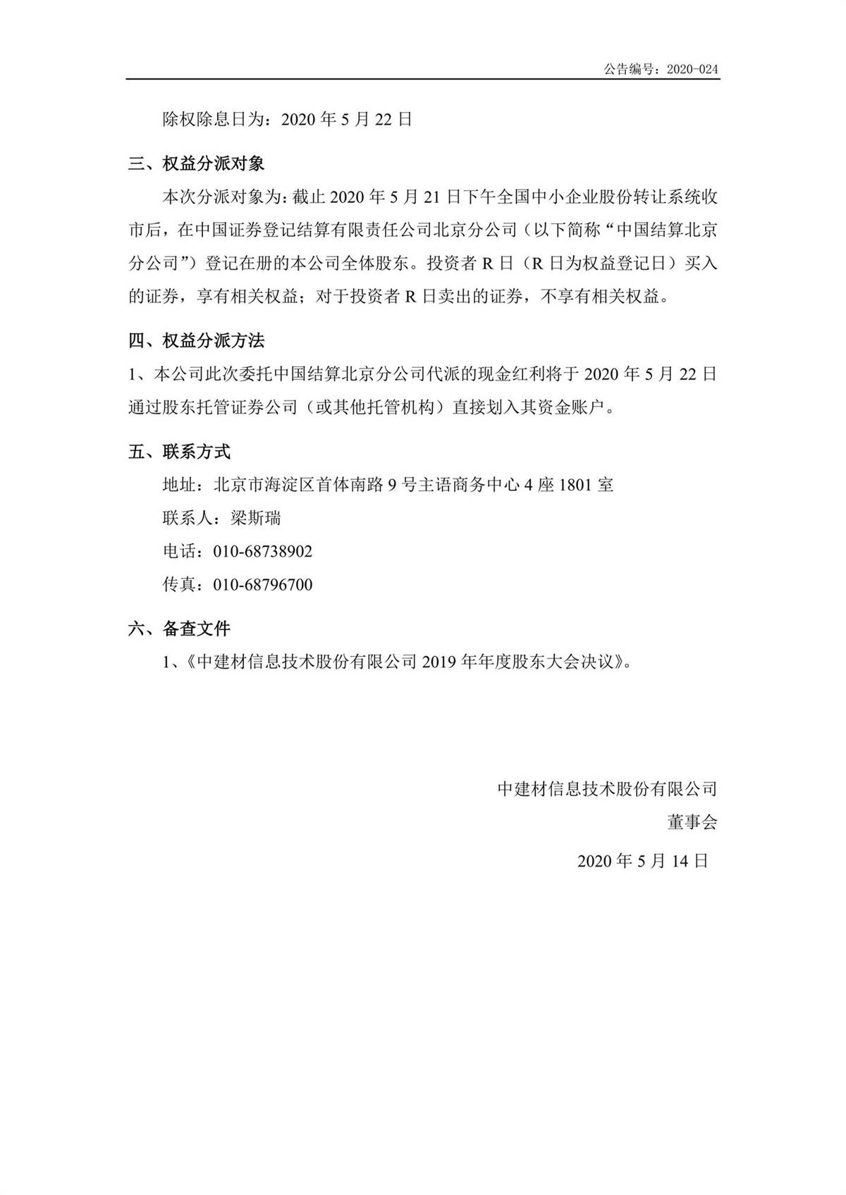 中建信息2019年年度權(quán)益分派實(shí)施公告